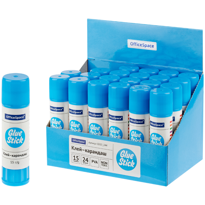Клей-карандаш ПВА OfficeSpace белого цвета подходит для склеивания бумаги и картона. Вес - 15 граммов. В картонном дисплее 24 штуки. Является незаменимым помощником для работы в офисе, а также для школы и детского творчества. Клей морозоустойчив. Клей в удобной для хранения круглой форме корпуса.